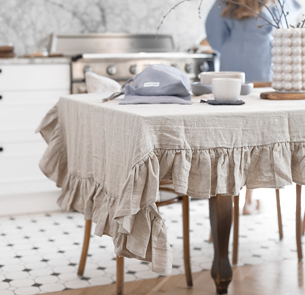 Ten lniany obrus z falbanami to perfekcyjne tło dla Twoich poranków – od leniwej kawy po spontaniczne śniadania z przyjaciółmi. Jego naturalny, lekko nonszalancki charakter doda uroku każdemu stołowi, niezależnie od okazji