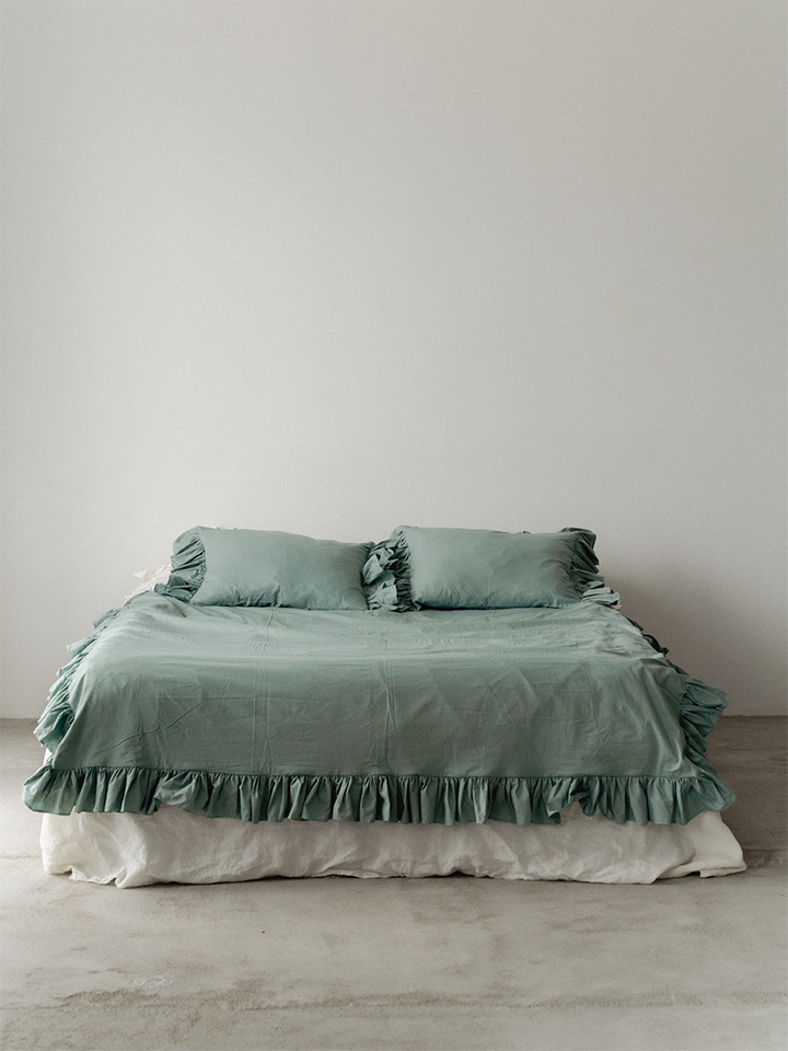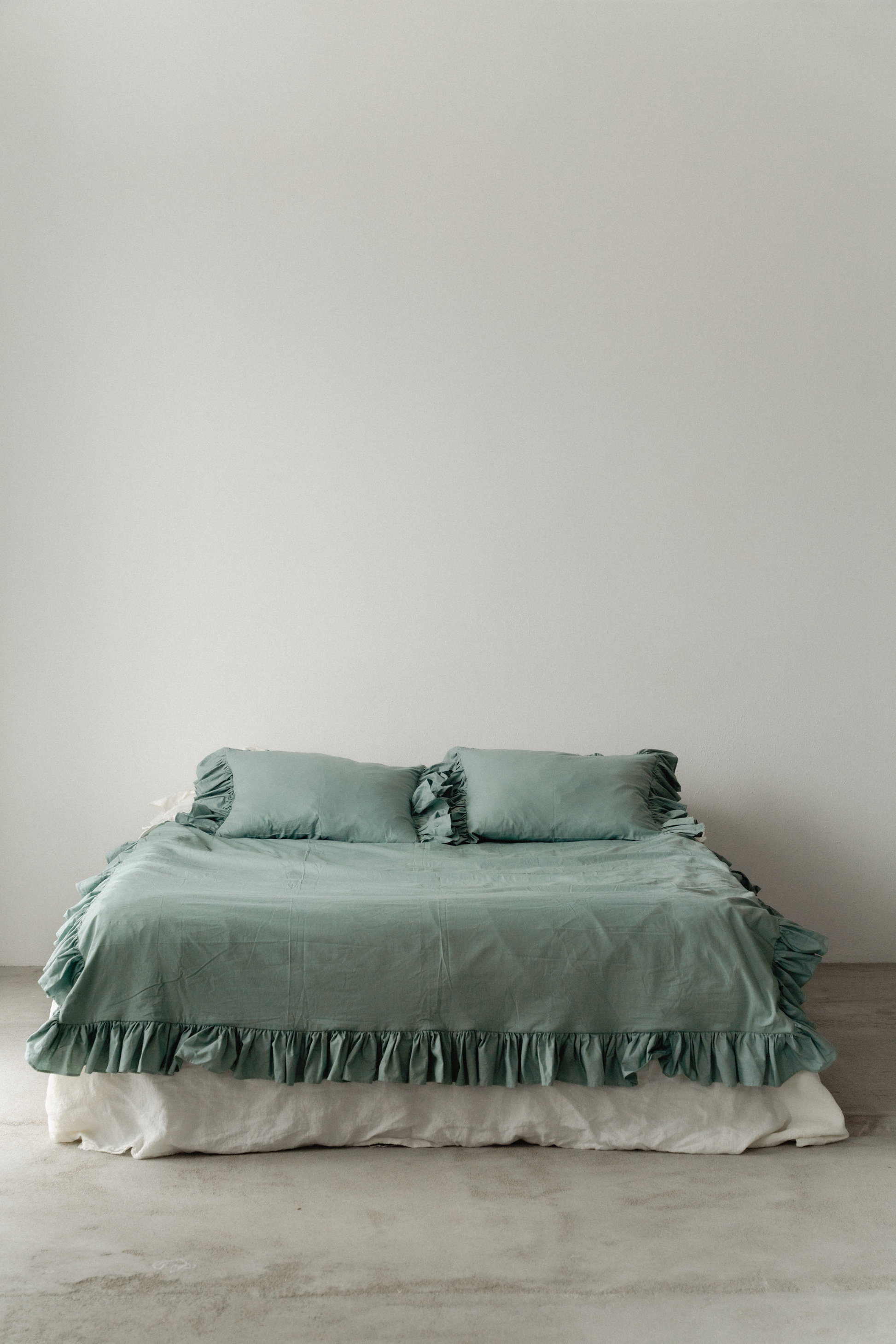 Komplet pościeli z romantycznymi falbanami z najwyższej jakości bawełny. Ten model doskonale sprawdzi się zarówno w minimalistycznych nowoczesnych wnętrzach jak i tych klasycznych z nutą vintage. Naturalna tkanina i perfekcyjne wykończenie spr