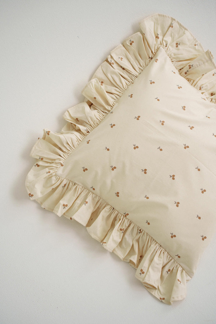 Naturalna i niebarwiona bawełna, a na niej wzór w słoneczne cytryny. Ta poduszka wygląda świeżo, lekko i po prostu uroczo. Ten wzór zachęca do tego, aby zjeść śniadanie w łóżku. W miękkości tej bawełny zakochasz się od pierwszego poranka.