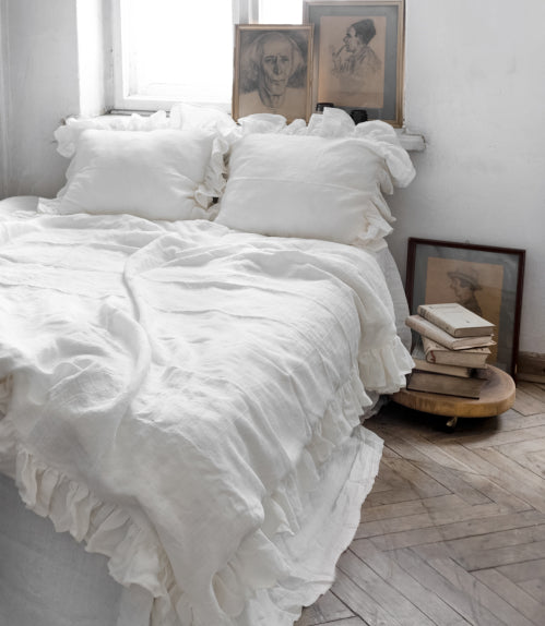 Jeśli cenisz naturalne, trwałe materiały, ta lniana poszewka będzie strzałem w dziesiątkę. Wykonana z najwyższej jakości europejskiego lnu, jest lekka, przewiewna i przyjemna w dotyku. Romantyczna falbana sprawia, że pasuje do każdej sypialni. A najlepsze? Połącz ją z kołdrą z tej samej kolekcji lub dodaj do bardziej klasycznego kompletu jako uroczy dodatek. Miksuj kolory, rozmiary i ciesz się pięknym kompletem pościeli.
